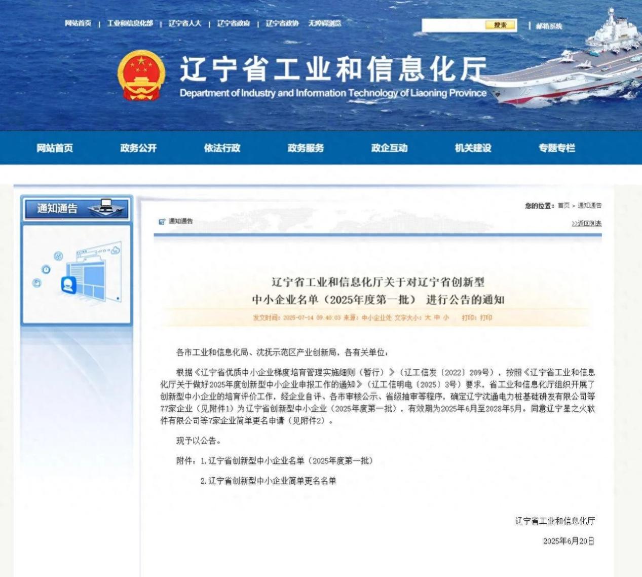 日前,辽宁省工业和信息化厅关于对辽宁省创新型中小企业名单(2025年度第一批)进行公告,我市2家企业荣获创新型中小企业,