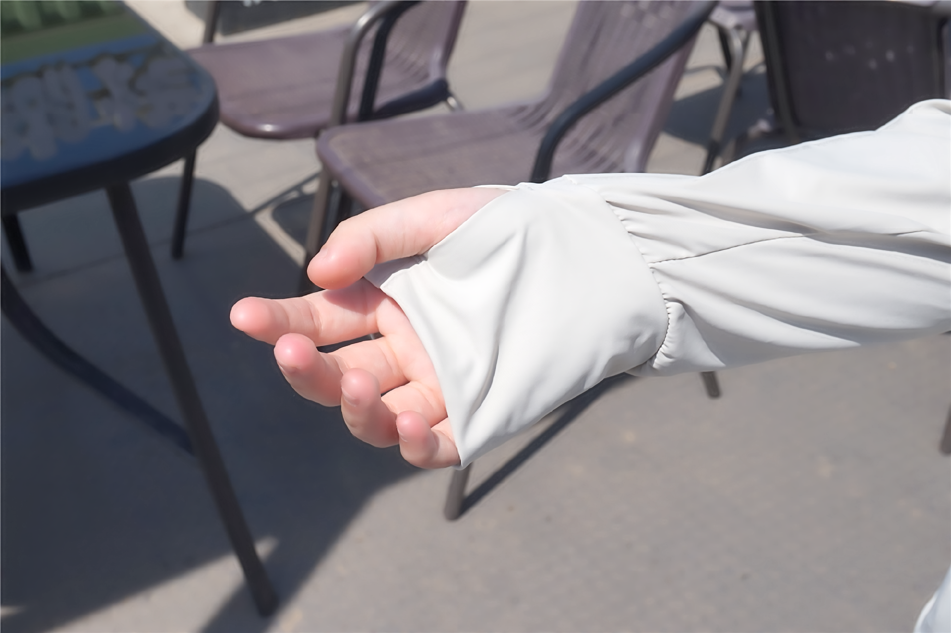 袖口设计有指洞,能将手背完全包裹住,避免手背被晒黑,这是很多普通防晒衣忽略的细节。平时开车、骑行的时候,手背很容易被阳光照射,有了指洞设计,就能实现全方位防晒,不用再额外戴防晒手套,既方便又实用。而且指洞的大小设计得很合理,不会紧绷手指,也不会轻易滑落,不影响手部活动。