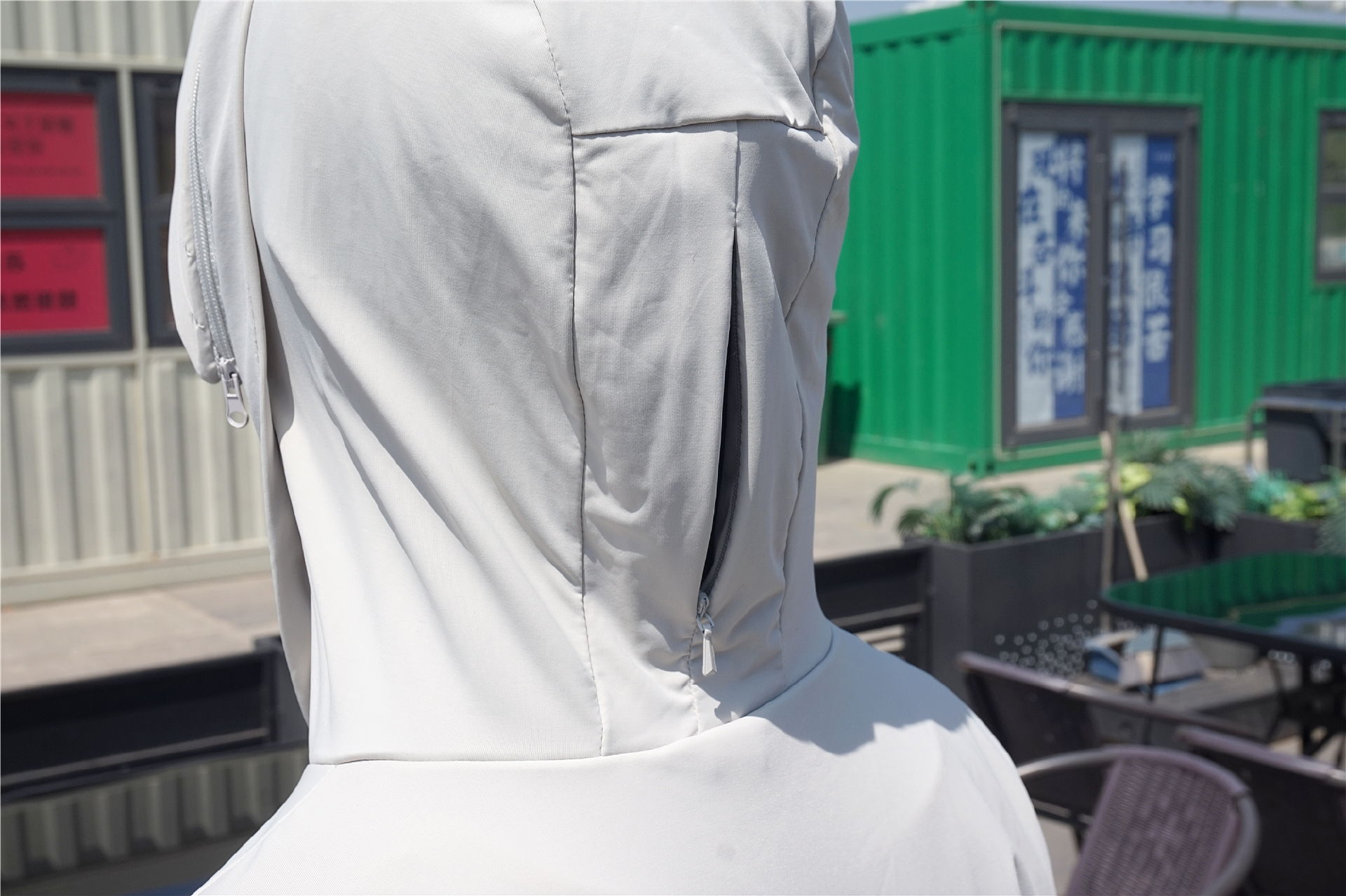 同样非常值得一提的是,VBREX防晒衣的女款还专门设计了发洞,方便扎马尾辫的女生穿着,避免帽子将头发压乱,也能让头部更透气,不会因为帽子包裹而觉得闷热。