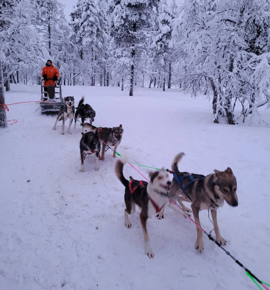 5KM 哈士奇雪橇:一队热情的二哈带你穿梭原生态雪原,感受风驰电掣的快乐,全程 20-30 分钟沉浸式体验拉普兰荒野风情