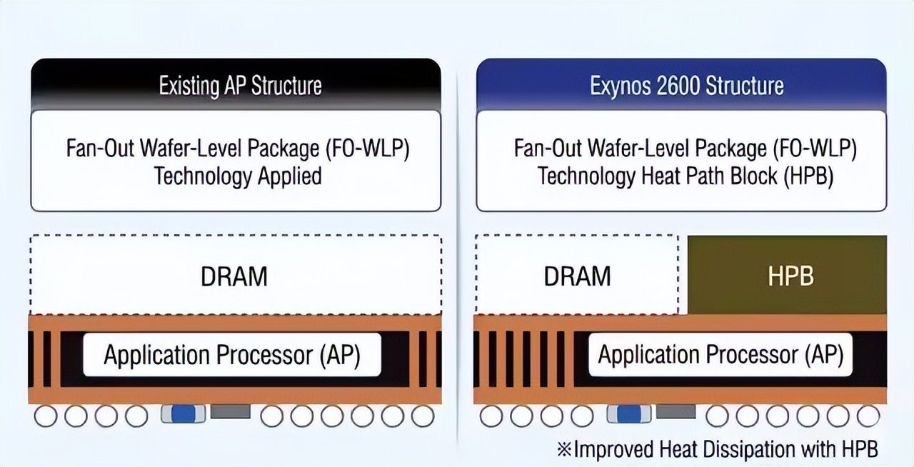 “HPB”是一种叫做“Heat Pass Block”的全新的封装技术,其原理是在封装时,在Soc内,让一个铜基 HPB 散热器,直接与处理器核心直接接触,这样让芯片内核一有热量,就能够直接传导散发出来,提升热传导效率,达到快速散热,然后降温的效果。