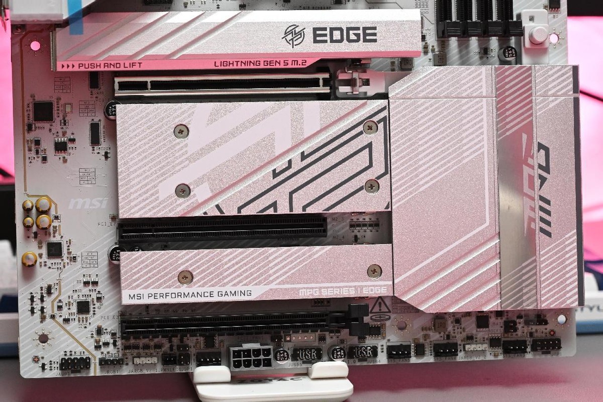 我本来有个Plan A在很早之前买了一张微星4xm.2转PCIe的扩展卡,这张扩展卡需要PCIe插槽进行x4x4x4x4拆分才能用,我这次计划将这张扩展卡插入到PCIe_1,然后将一张RTX5080插入到PCIe_2,这样就完美实现了AMD的高性能和intel高扩展性。