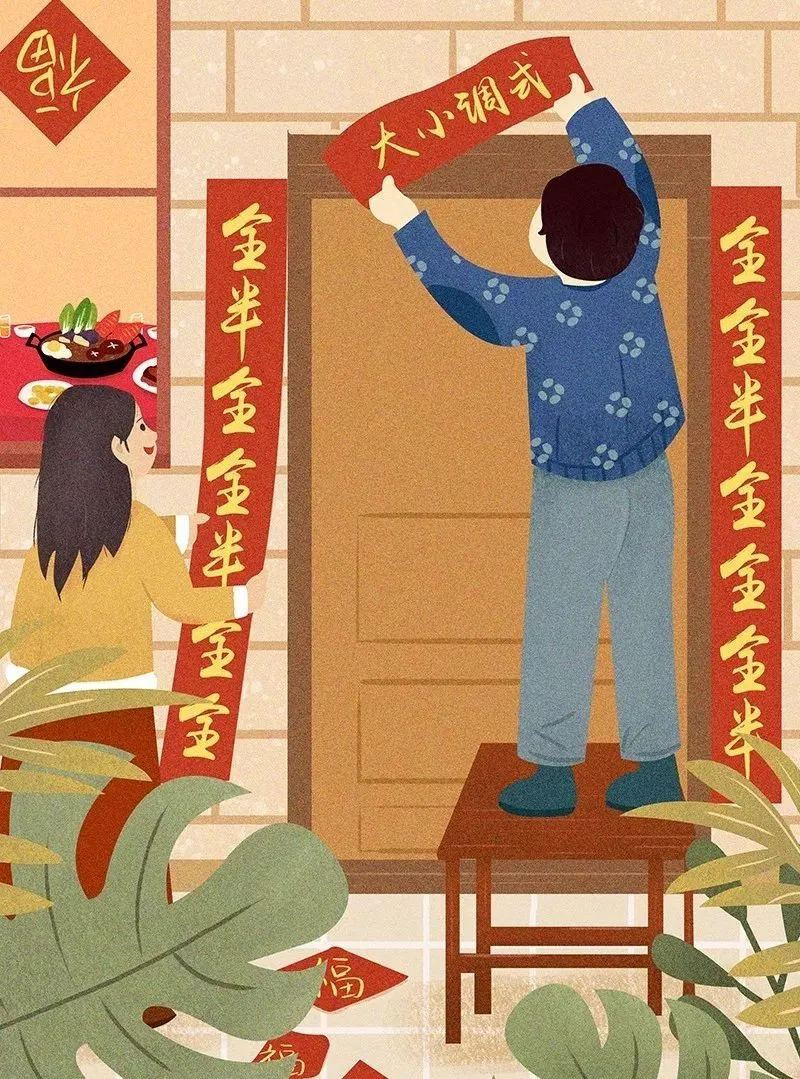 春联又叫“春贴”、“门对”、“对联”,体现着人们对新年的美好愿望。当人们在自己的家门口贴上春联的时候,就意味着春节正式拉开序幕。