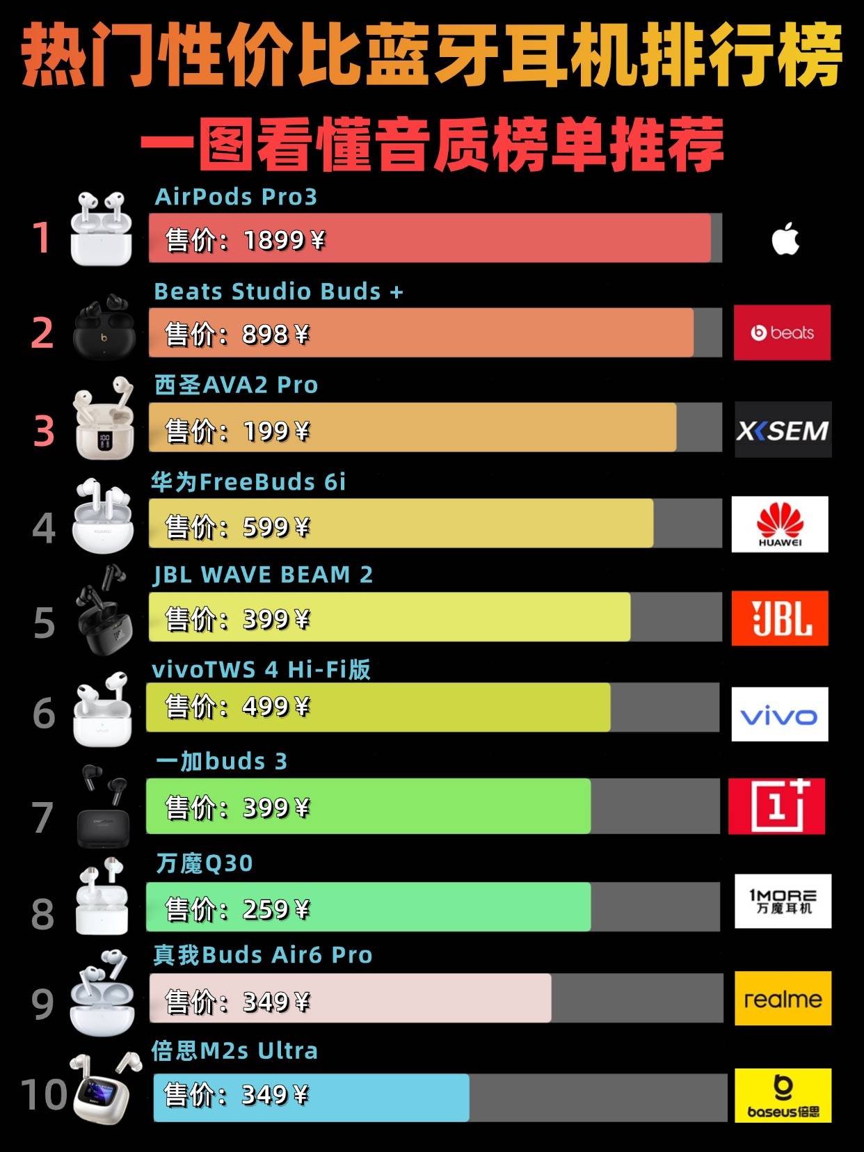 作为一名长期专注蓝牙耳机评测的数码博主,我实测了多款热门型号的音质、降噪和延迟表现,并结合权威机构数据,整理出最新音质表现排行榜(如下图),供大家选购参考。