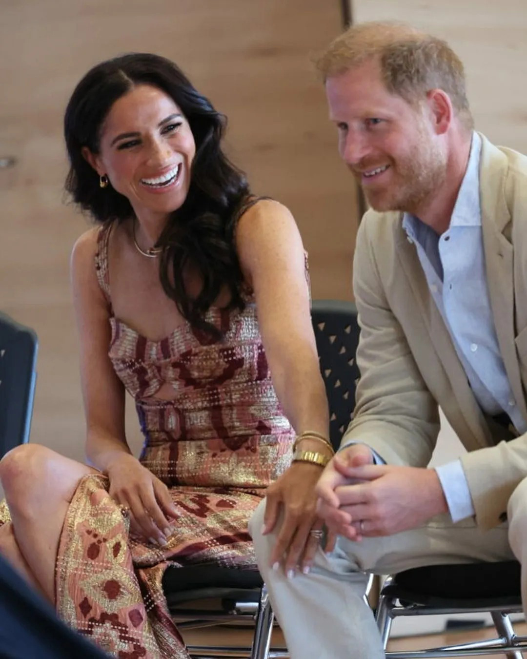 就比如她这次穿了又穿的Johanna Ortiz,正是来自哥伦比亚本土设计师女装品牌,也是时尚圈鼎鼎有名的大师级作品。在2023年访问尼日利亚期间,这位公爵夫人还特意选择了这位出生于加州的设计师设计的连衣裙,并在“Women of Vision Awards”参加颁奖典礼的时候穿上Johanna Ortiz 设计的金色露肩连衣裙,深得梅根的青睐和喜爱。