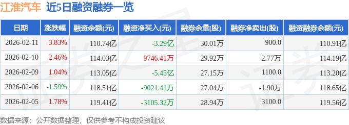 江淮汽车融资融券信息显示,融资方面,当日融资买入7.18亿元,融资偿还10.47亿元,融资净偿还3.29亿元。融券方面,融券卖出3.39万股,融券偿还3.3万股,融券余量30.01万股,融券余额1701.57万元。融资融券余额110.91亿元。