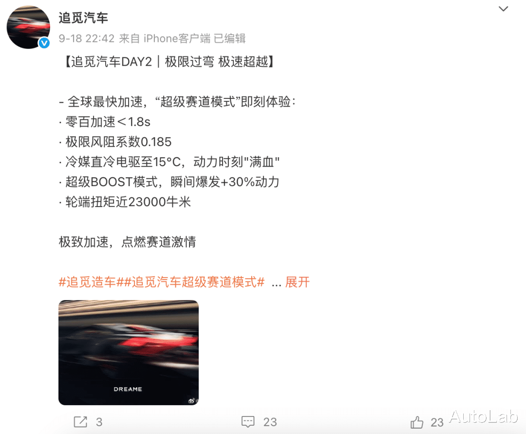 如果追觅汽车这个零百加速性能量产之后不缩水,那么追觅汽车首款产品将成为目前零百最快的新能源车。