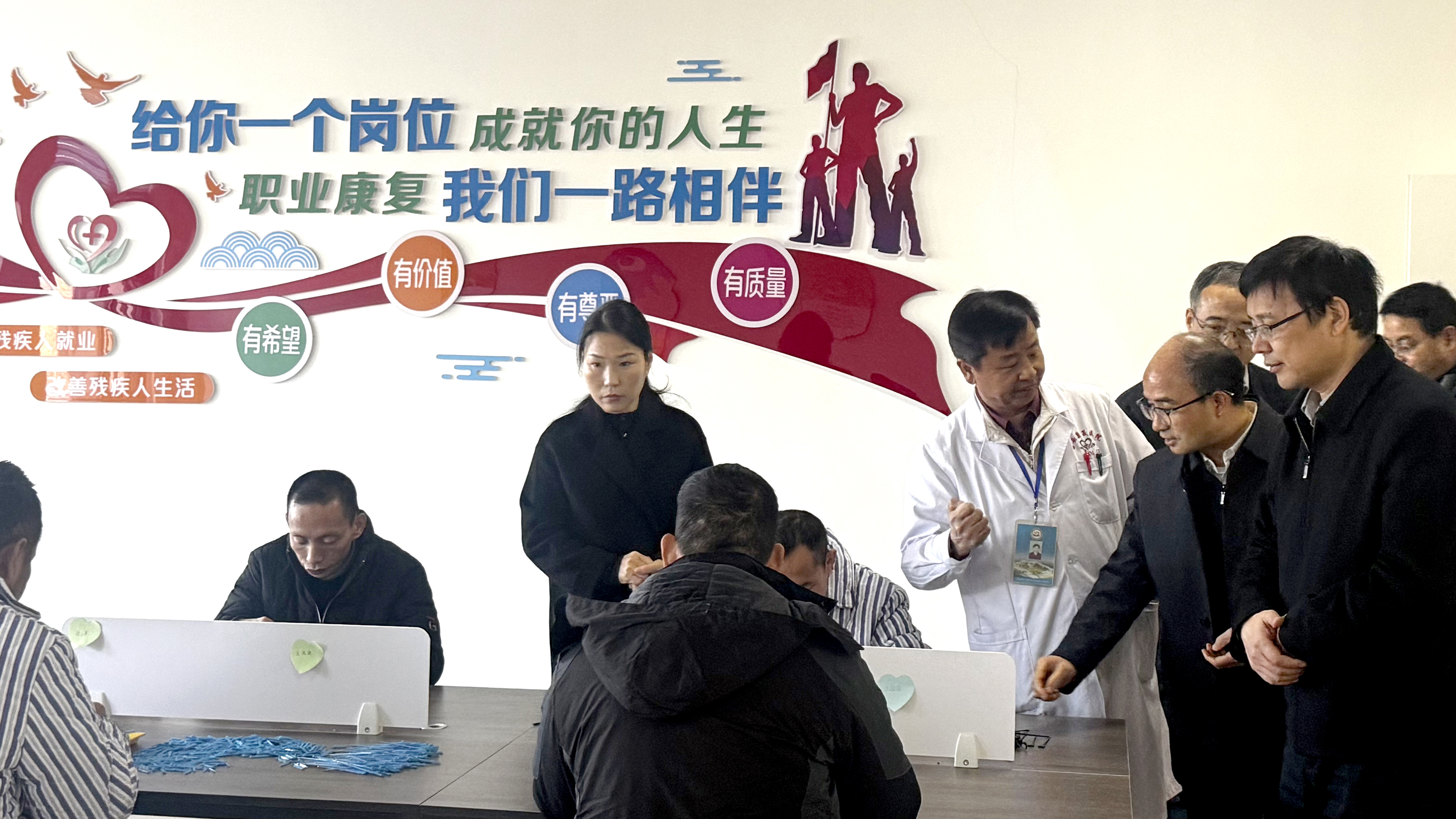 在手工室里吴局长看到那些编织的篮子说,这些篮子不仅手工精巧,还能够就地取材变废为宝。患者们一个个神情专注,脸上洋溢着笑容,令吴局长一行均感到十分震撼。