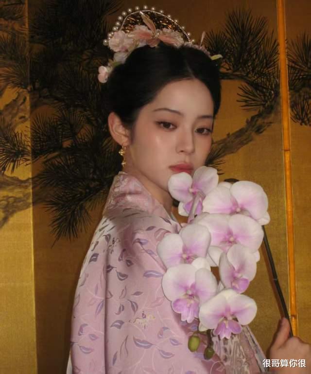 大提琴才女欧阳娜娜,自带一种优雅的艺术气息。她的造型最为端庄,淡紫色的纱质褙子上绣着暗纹缠枝莲,搭配华丽的点翠头面。当她手持乐器(舞台道具)浅笑时,那种“腹有诗书气自华”的优雅感,瞬间拉满了名门闺秀的氛围感。