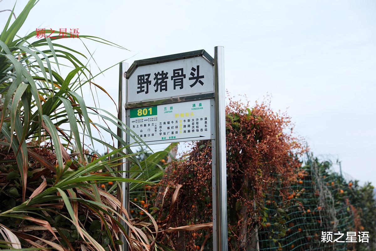 从涌泉镇通往东林村的801路公交车,还设置了“野猪骨头”站点。
