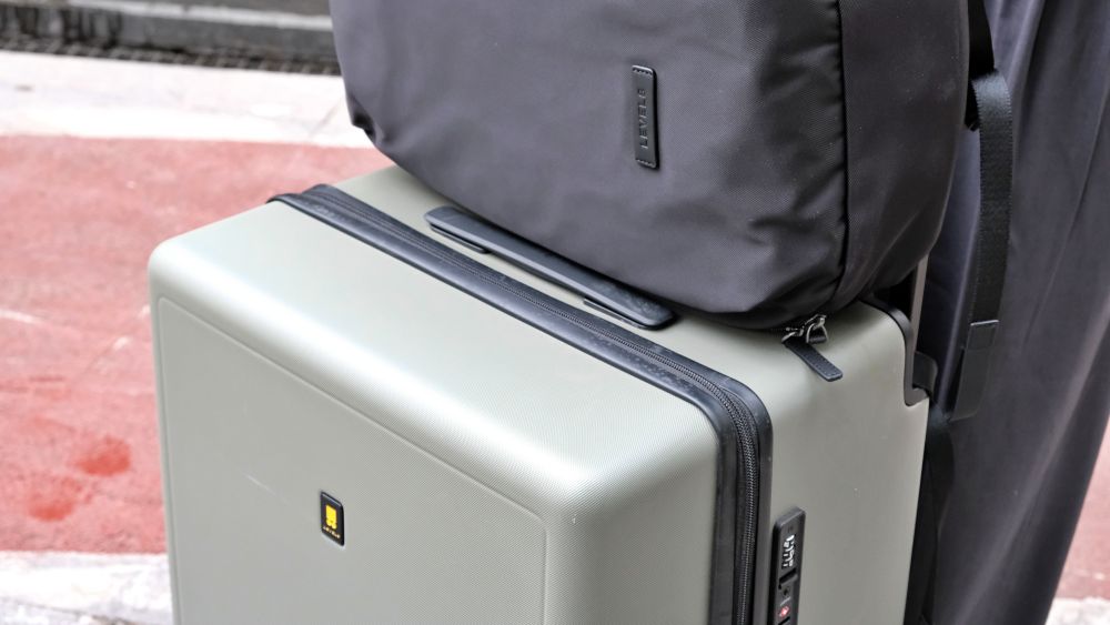 在出差的场景下使用,Urban胶囊双肩包还能够和行李箱“合体”。背包底部创新设计的12cm固定带完美咬合行李箱拉杆,侧边辅助提手让单手持握更稳定。这样的设计让我在赶火车或者赶飞机的时候可以拉着行李箱狂奔。