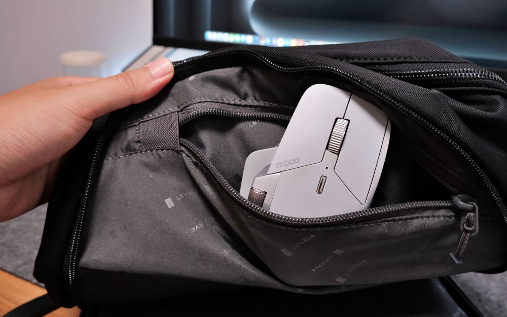 除了这些主要的收纳仓之外,Urban胶囊双肩包还设计了电脑配件独立收纳仓,可以放置鼠标、电源线等常用电脑配件。背包的正面还设计了大容量前口袋,自己通常会把iPad放置在里面,可以方便自己快速的记录和写写画画。