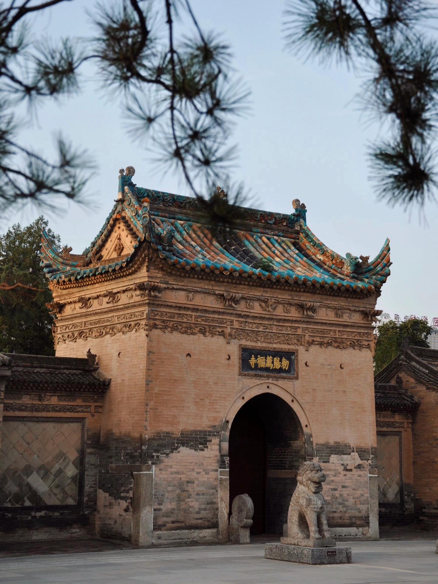 踏入荐福寺,首先映入眼帘的是明代修建的南山门。不同于大兴善寺山门的恢弘张扬,这座山门带着几分内敛古朴。灰瓦青砖,飞檐斗拱,没有繁复的雕梁画栋,却自有一番历经岁月沉淀的韵味。仔细端详,檐角的走兽虽已斑驳,却依然保持着威严的姿态;门框上的石刻虽经风雨侵蚀,仍能看出当年工匠的精湛技艺。这份低调的美感,恰如小雁塔本身,不刻意张扬,却让人忍不住驻足凝视。