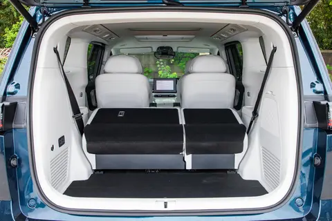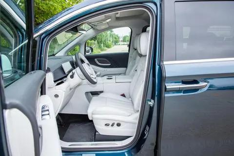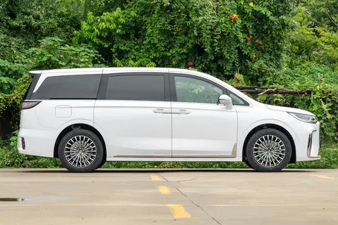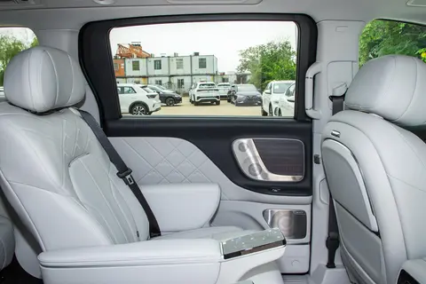 车尾顶部的扰流板,给整台车增加了点运动感,不会像有些 MPV 那样看着太臃肿。车身尺寸数据也很亮眼,车长 5315 毫米,轴距 3200 毫米,这个轴距长度,保证了后排空间的宽敞度,后面坐三个人也不会觉得挤。20 英寸的新轮辋搭配 255/50 R20 的轮胎,跑起来稳定性不错,过减速带或者坑洼路面的时候,颠簸感能减轻不少。