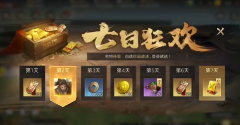 接下来的七日狂欢活动,更是让人惊喜不断。第二天就免费送橙卡孙策,孙策的出现就像一颗璀璨的星星照亮了新手玩家的游戏之路。他能带领你的队伍在战场上冲锋陷阵,取得一场又一场的胜利。而后续赠送的自选战法包,让你可以根据自己的武将阵容和战斗需求来选择最合适的战法,进一步提升队伍的战斗力。这就好比给你的军队配备了精良的武器,让你在战斗中更有底气。