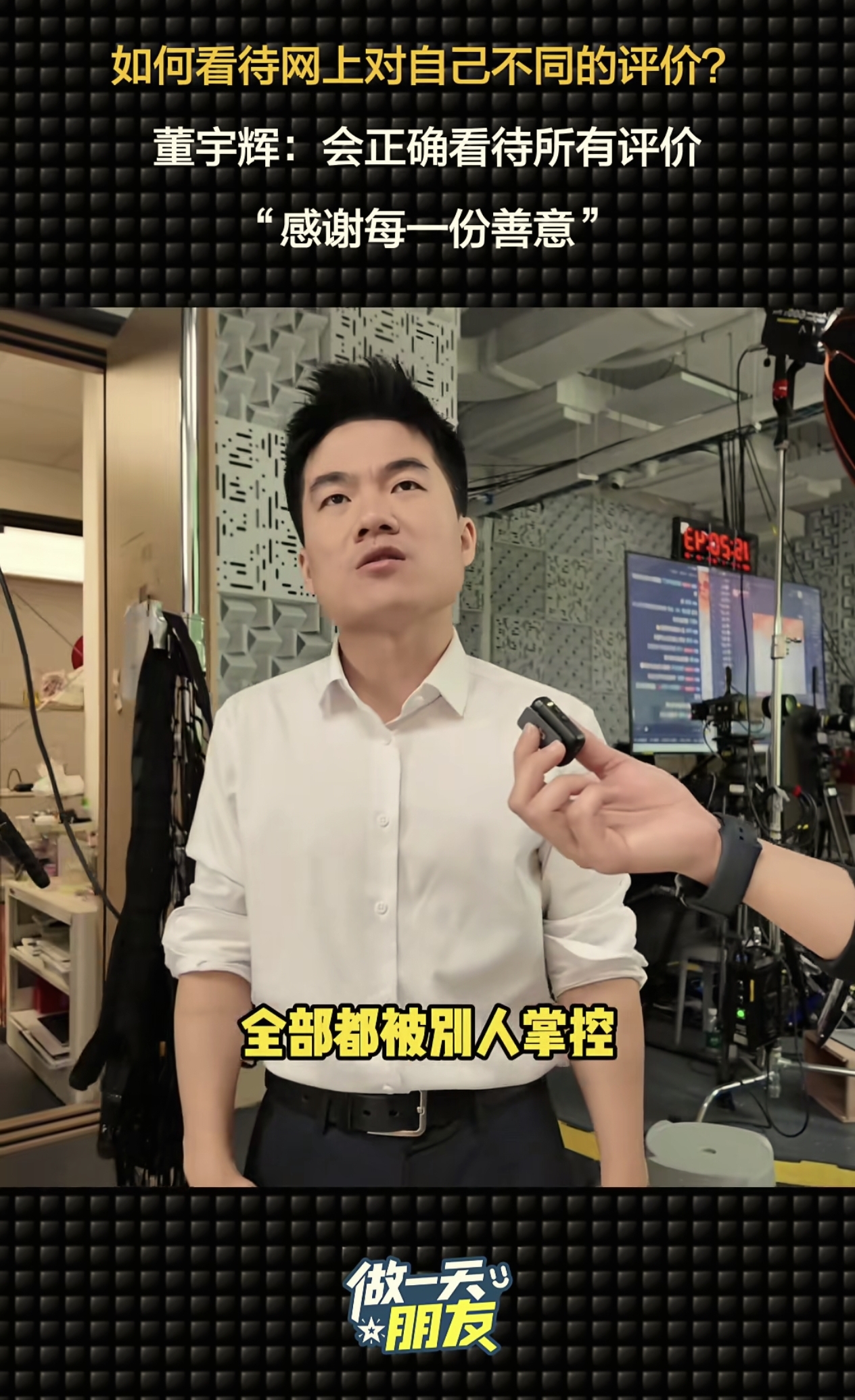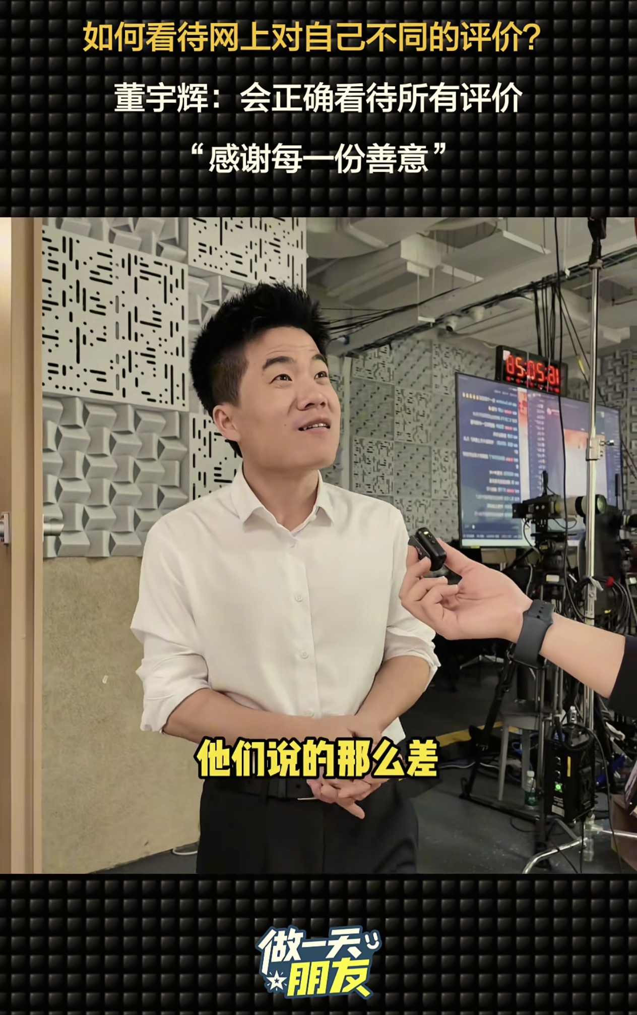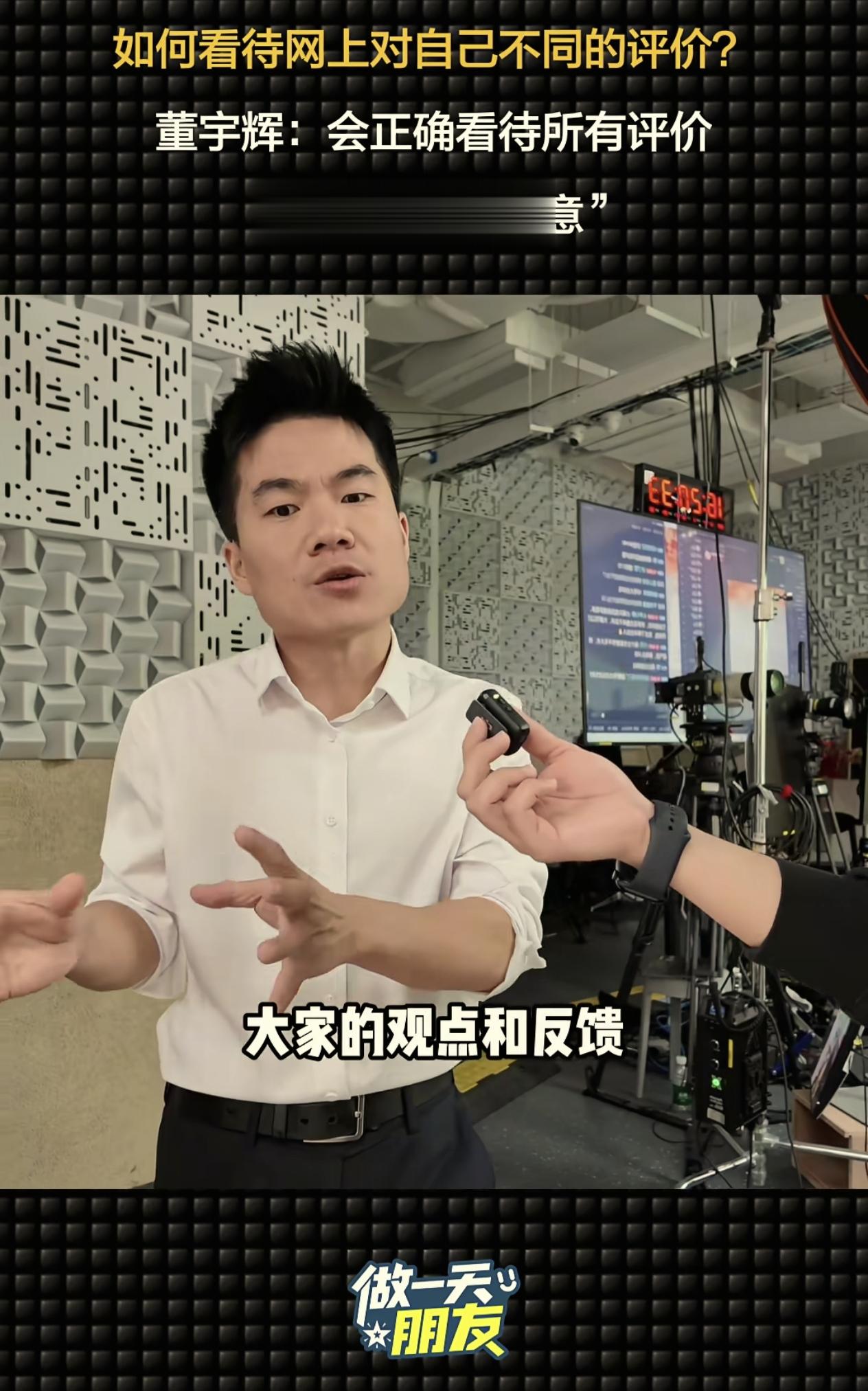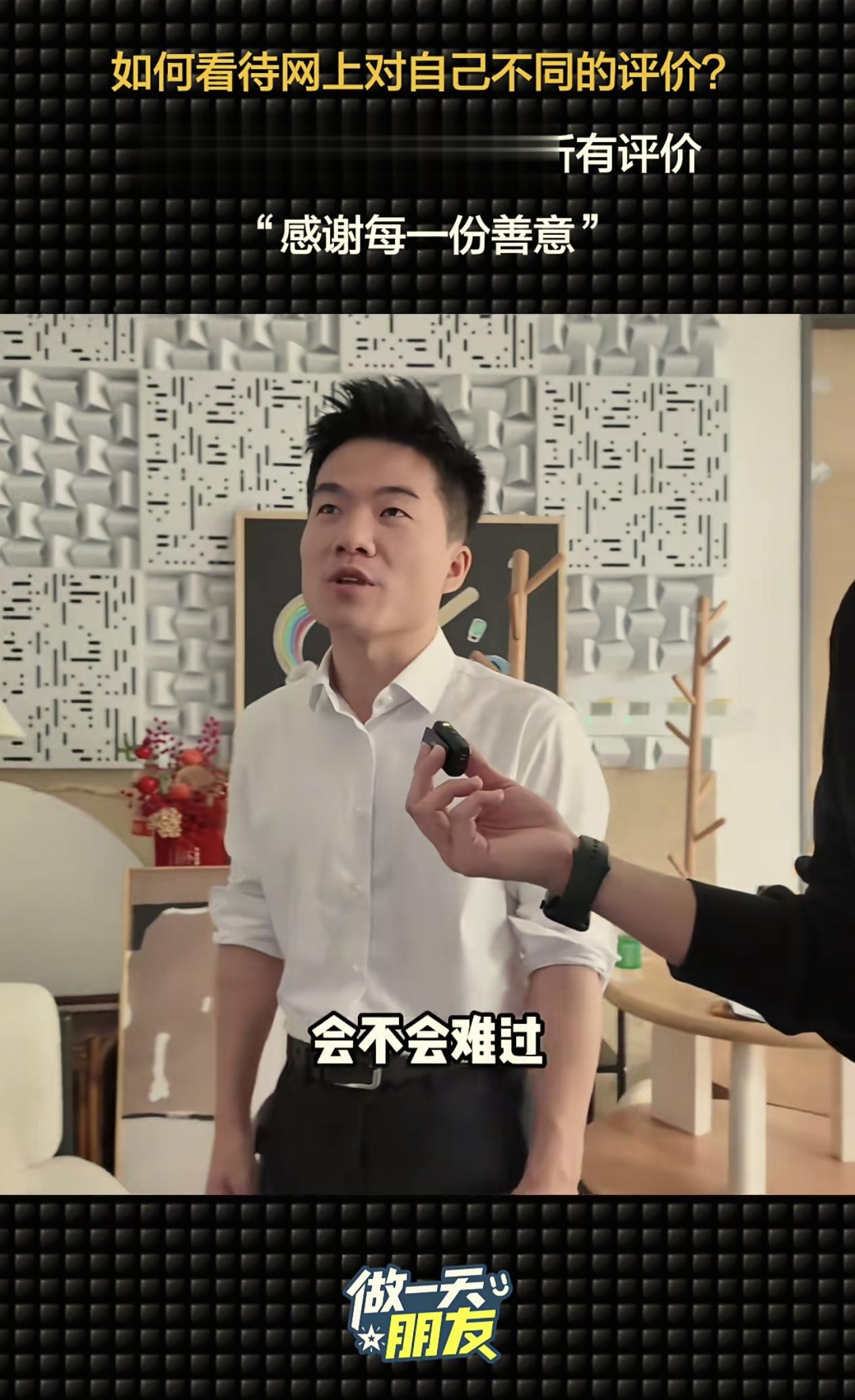 等宇辉带着记者参观完公司后,就开始进入这条视频的高潮时刻,那就是放记者询问宇辉“现在网上喜欢你的人也非常多,但也会有一些负面的声音,对于这些不同的观点和评价,会影响您的状态吗?”