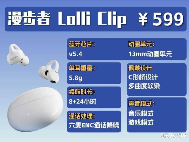 讲真,漫步者 Lolli Clip 居然有空间音频 + 头部追踪,这个我是挺意外的!打开后声音不挤耳,声场开阔,听歌追剧沉浸感还不错。音质方面,13 毫米钛金属振膜动圈,细节挺清晰,高低音也舒服,日常用完全够了。