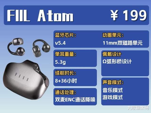 佩戴设计特别贴心,耳机用了2.5mm 的错位设计,戴在耳朵上是前高后低的样子,特别贴合耳朵形状,戴着特别稳;还有∠ 12° 的弧面耳托能给耳朵提供合理支撑,把耳机电池那块做成了弧形,能贴紧耳背,舒适度又上了一个台阶;单个耳机才4.5 克,就算戴好久,耳朵也没啥负担,完全不会有压迫感。