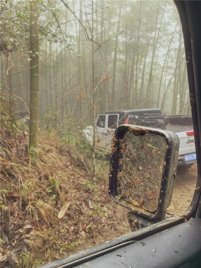 在一些相对平坦的路上,我轻而易举的就过了,到下坡的时候我倒是谨慎了,低4的模式下,保稳一点,我还开上了泥地模式,因为雨真的很大山里还有雾,路都有点看不清楚,我没踩油门,而是让车慢慢溜下去,方向盘我控制的牢牢的,轻点点刹车,哎这车还真就稳当的下来了,基本没有打滑,看群里他们倒是一个个骂骂咧咧的,我是真爽。话说回来,倒不是他们技术菜,是车真不给力啊!