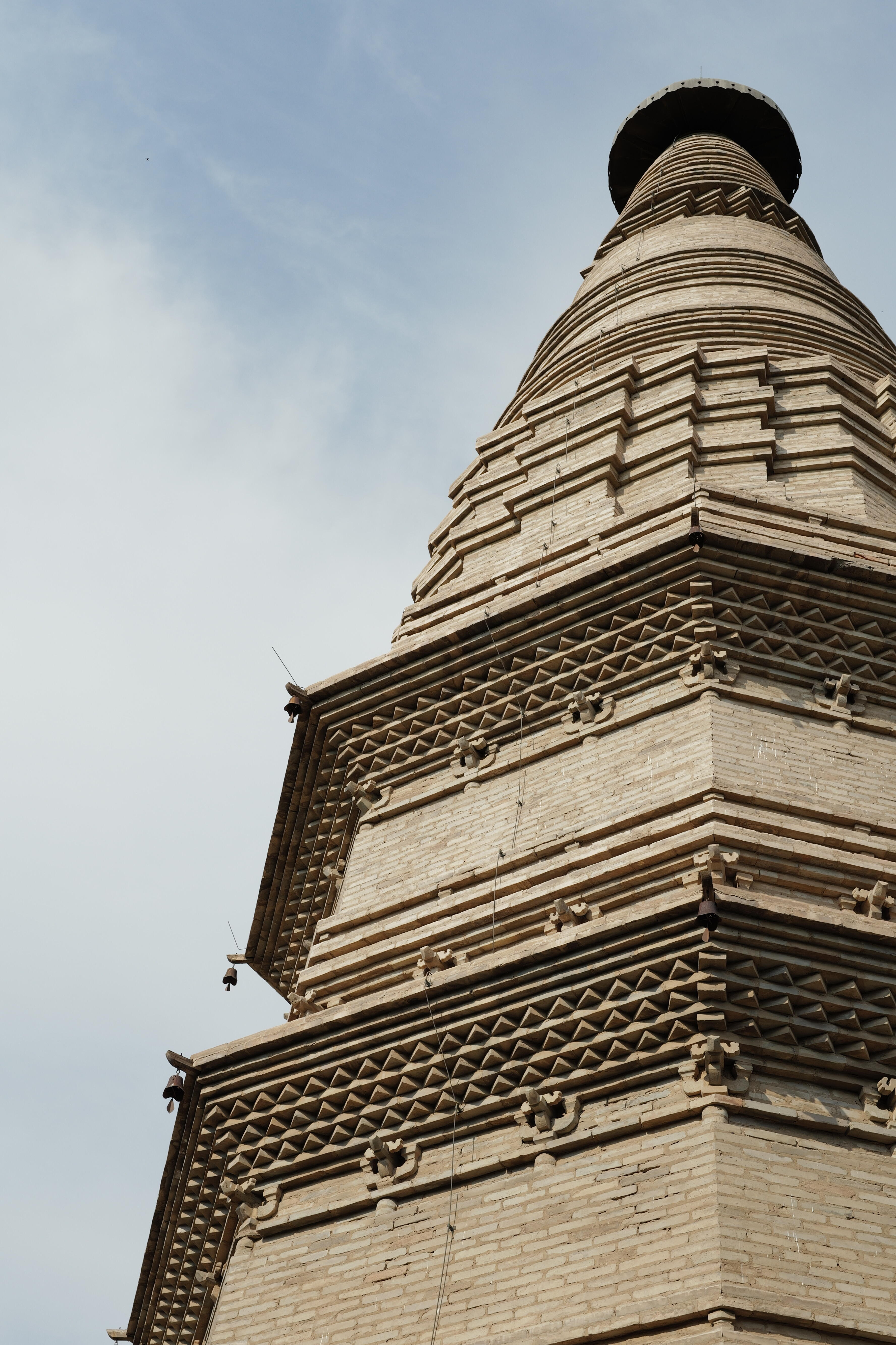 起身再次走近宏佛塔,绕着它慢慢踱步。可以看到塔身上雕刻的一些图案,虽然有些已经模糊不清,但仍能看出当初工匠们的精湛技艺。那些线条,或流畅,或刚劲,勾勒出一个个神秘的形象。站在塔下,仰头望去,塔顶似乎与天空相接,让人不禁感叹,在那个遥远的年代,人们是如何建造出这样一座塔的,又寄托了怎样的情感和愿望。