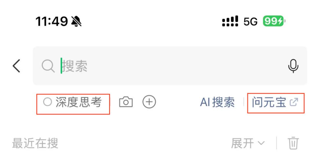 对此,镜相工作室询问腾讯,腾讯回复称:微信搜一搜持续优化AI搜索能力,在搜索入口和体验上进一步优化升级,用户点击微信顶部搜索框时,可看到“深度思考”入口,还可上传图片或文件,获得更精准、智能化的搜索结果。此外,我们还提供“AI搜索”“问元宝”入口,给用户更丰富的智能搜索选择。目前处于灰度测试上线期间,未灰度到的用户仍可使用原有搜索功能,体验不受影响。