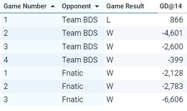 根据英雄联盟赛事官方统计数据,G2在过去两天进行的两场BO5(败者组决赛和夏季赛总决赛)中,他们连续六场比赛在前14分钟的经济均落后对手,然而最终全部翻盘获胜。G2的后期韧性和抓机会能力令人印象深刻,而BDS和Fnatic虽然能在前期取得领先,却无法将优势转化为胜势。