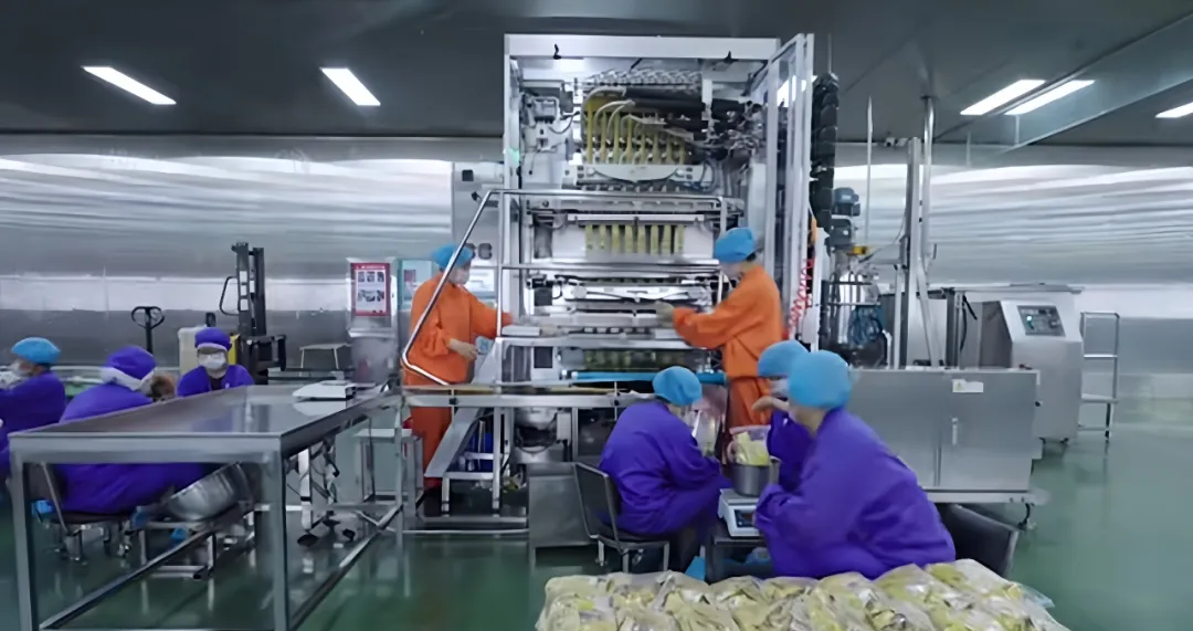 每天早上,大蒜、生姜、泡姜等50多种食材原料入库,即被送上灯检台挑选,经过不同的处理工艺,进到炒制车间进行炒制。产品灌装后,还要经过一道检验,重量低于下限的会被剔除掉。产品到了外包装箱区域,需要经过静置,再进入装箱环节,确保产品保质保量,快速送到客户手中。