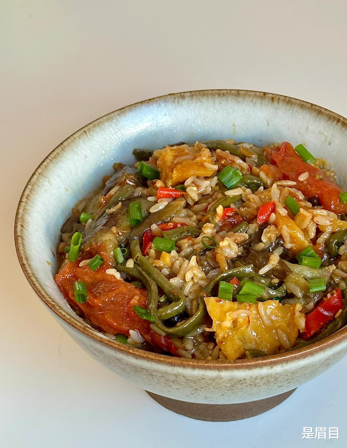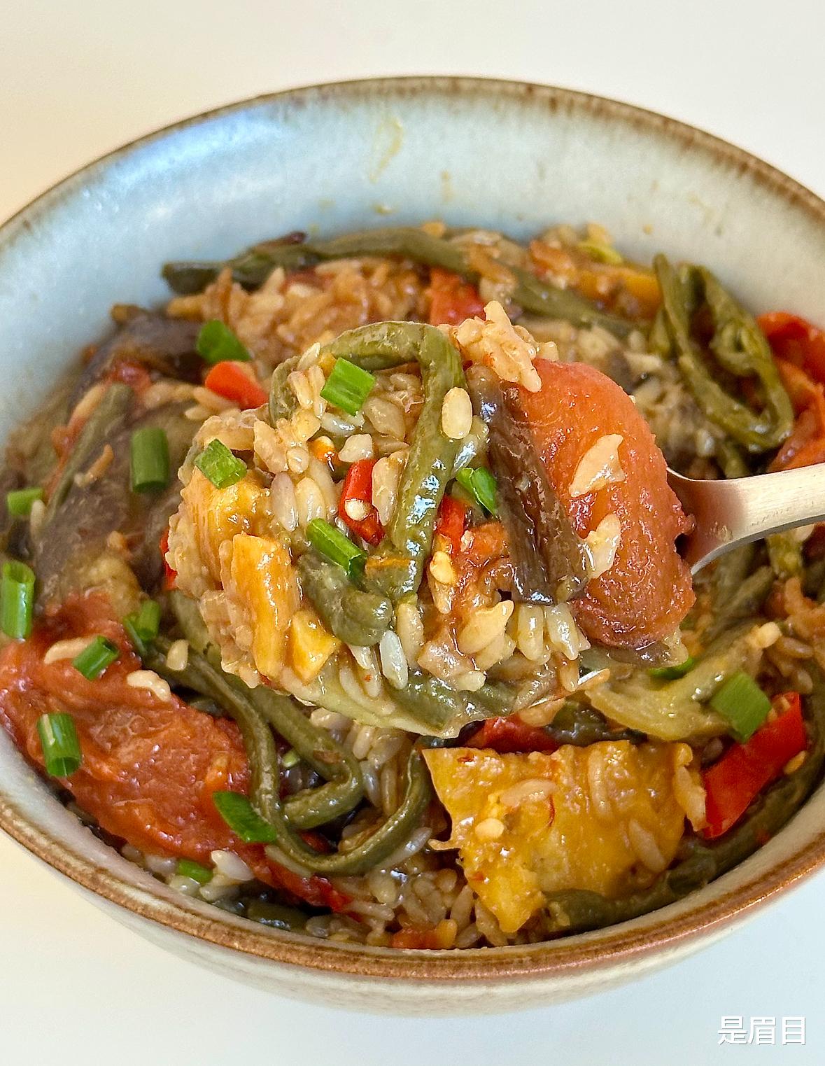这道菜将土豆茄子青椒三种常见蔬菜与米饭一同焖煮让米饭充分吸收蔬菜的鲜香和酱汁浓郁既省时省力又美味可口