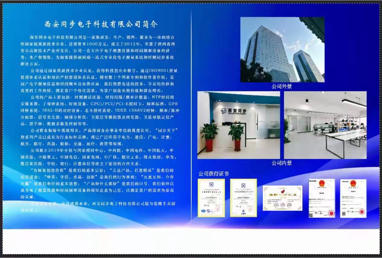 4路1pps脉冲信号输出,还可以选配NTP/PTP、IRIG-B码等时间信息,输出信号类型多,可以灵活搭配使用,满足各类测试项目、研究项目的需求,设备采用2u标准上机柜的机箱,前后均有输出通道,可以满足大多数项目集成使用,更有丰富的选件,如单北斗接收机、5ns高精度接收机、扩展通道、增加输出信号等等,也可根据客户需求定制,我司铷钟设备已经取得中国计量科学研究院、上海计量院、20所/504所/203所等军工研究所、陕西省/广东省等地方省级计量院证书。