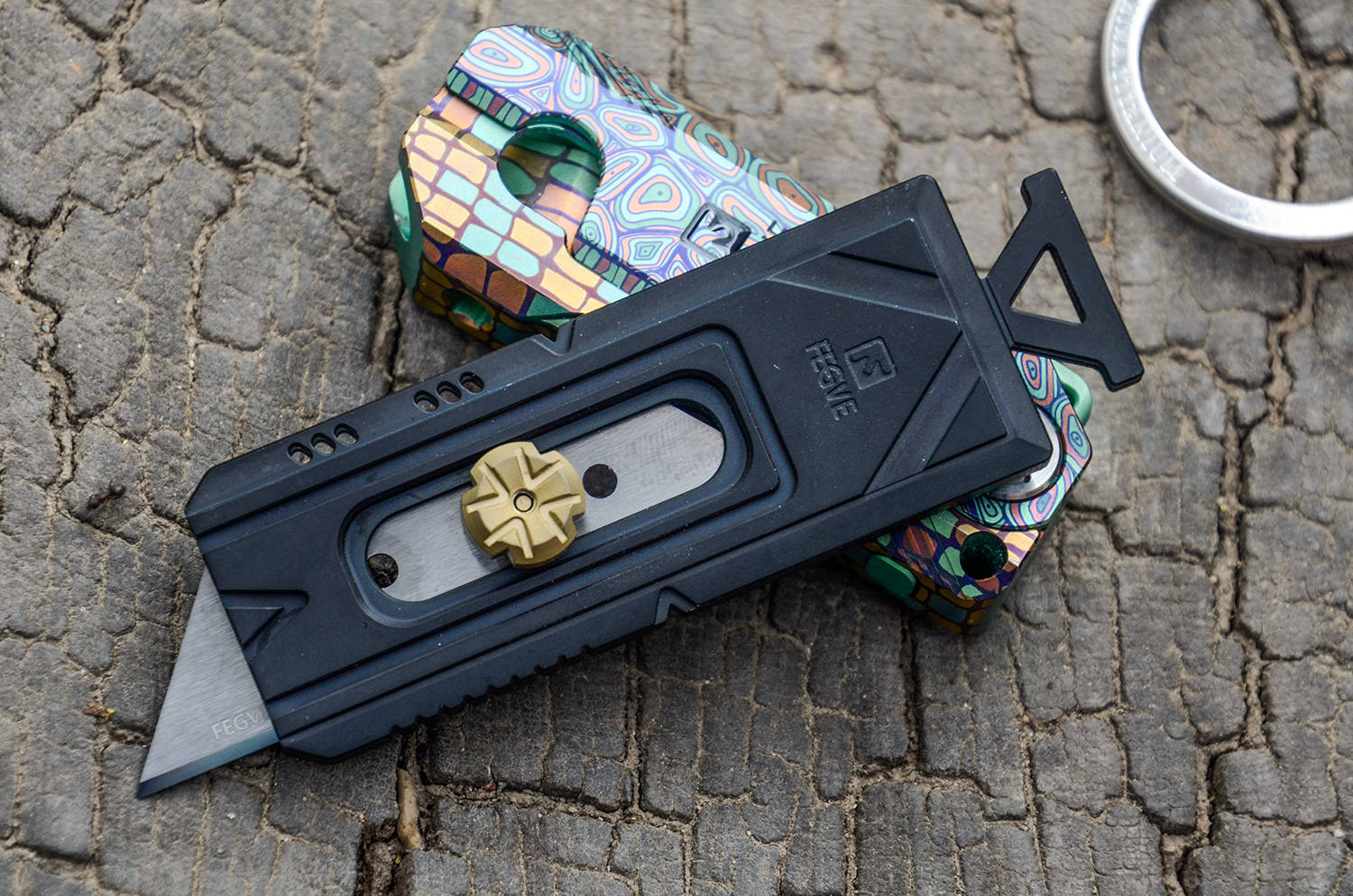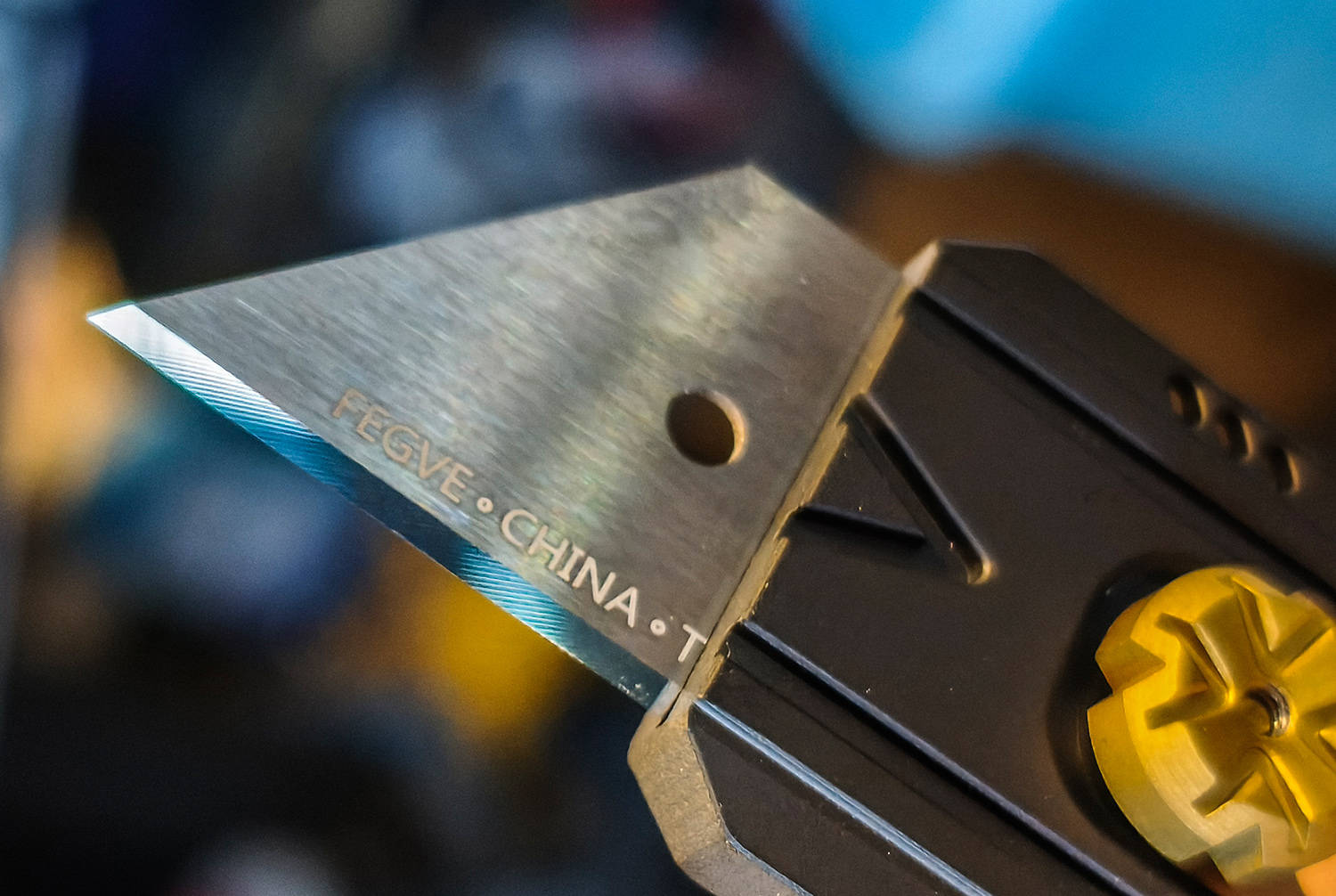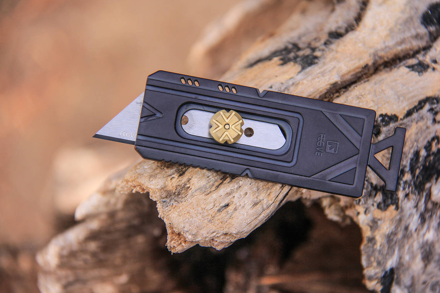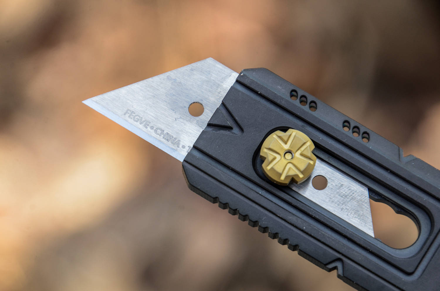 作为一款美工刀,费戈商亦以推扭控钨钢片之伸缩,推扭作四瓣花形,精巧而不失刚劲,指轻拨而刃自出,手微收而锋自藏,一推一收循法度,一开一合见锋芒,虽为掌中寻常器,亦藏刚猛断柔情。
