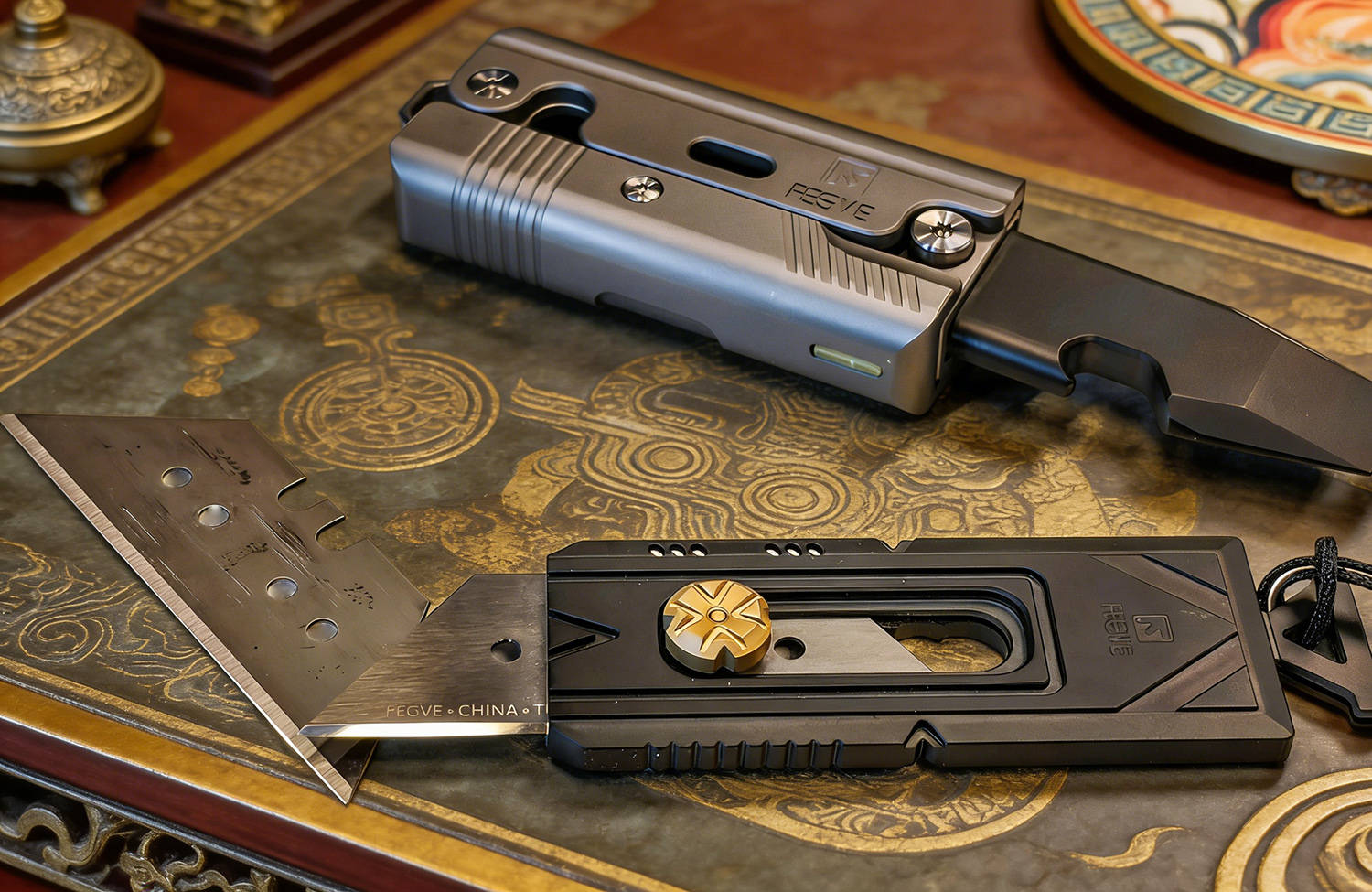 这就是费戈专业定制的“钨钢”梯形刀片,锋更胜商刃出鞘,斩裁利落无滞,硬度卓绝,耐磨持久,久用仍保锋芒,刃身凝青铜古意,自带殷商雄烈气势,刚锐内敛,一触即显王者锋芒。