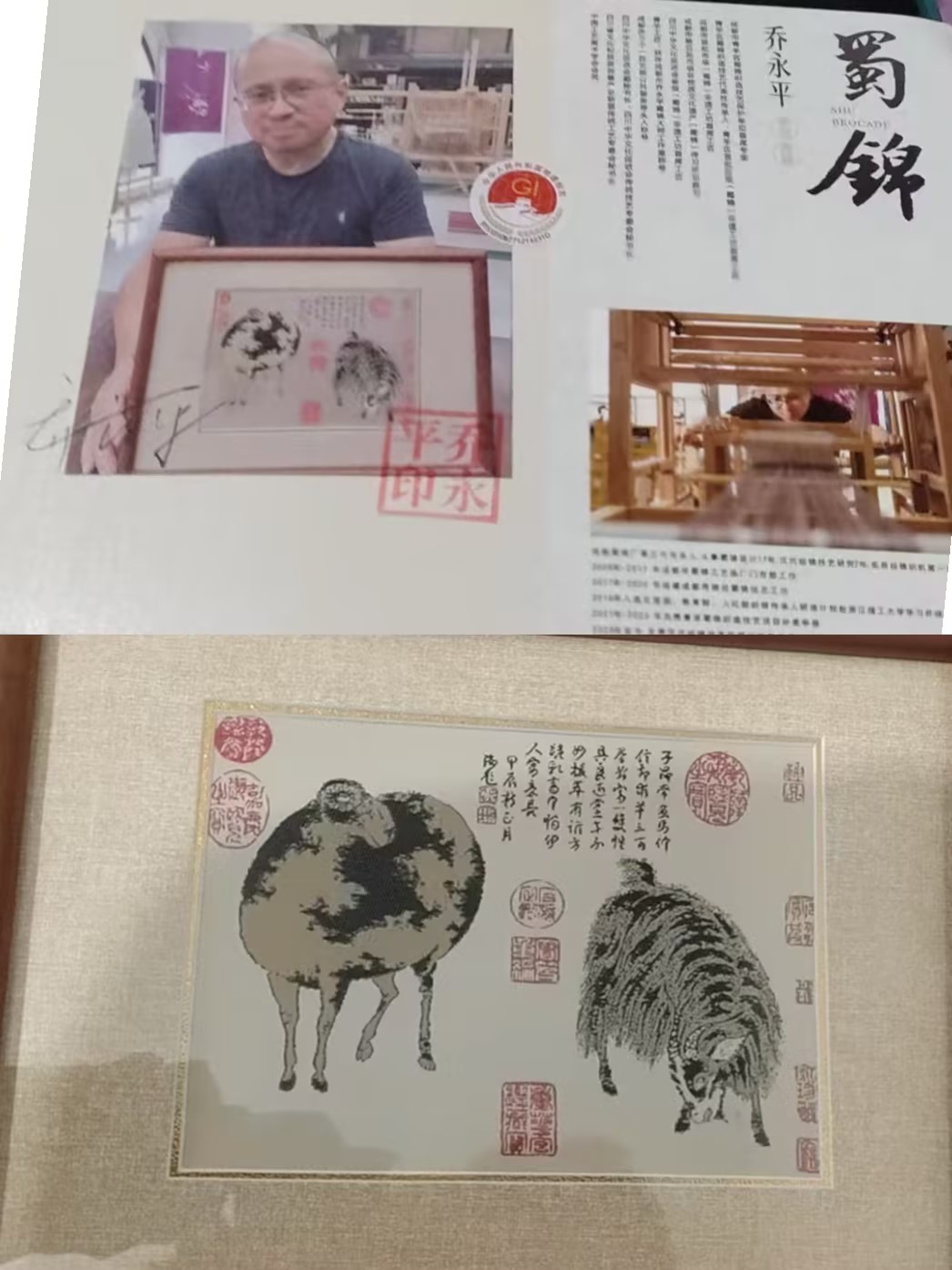 更关键的是,乔永平的创作填补了“蜀锦艺术化”的空白。传统蜀锦多以吉祥纹样为题材,而他将文人画的“意境美”植入其中——《子罕常羊》取材《庄子》,以绵羊喻“淡泊名利”的东方哲学,让蜀锦从“民俗符号”升级为“文化载体”。这种艺术价值,使其作品不仅是“工艺珍品”,更是“文化标本”,在艺术市场中独树一帜。