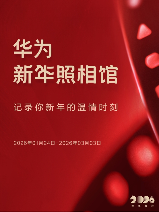 2026年1月24日起,连续多年举办的华为新年照相馆活动再次于全国陆续开启,它将科技与新春场景巧妙融合,为你增添别样的新春光彩。