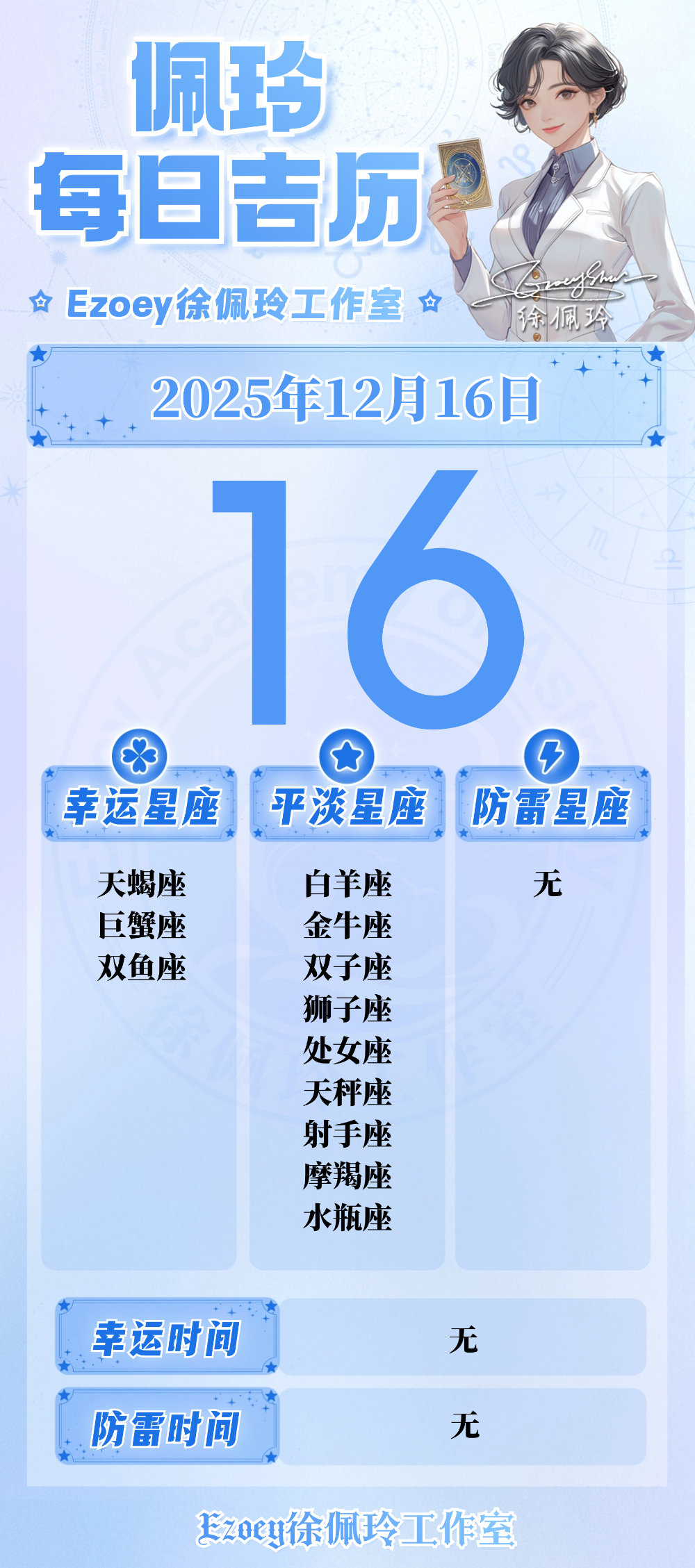 【12.16日播报】深度直觉日 幸运星座:天蝎座、巨蟹座、双鱼座——Ezoey徐佩玲25年星座播报