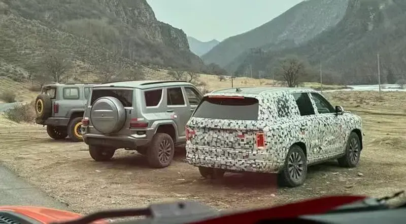 至于说车尾部分,坦克800依旧采用了计较方正的尾灯外壳,从这张远处拍摄的谍照中,我们无法分辨它是否会在D柱下形成尾灯的延展,或是在尾门中央带来贯穿,可就从目前的轮廓来看,它似乎与概念车有所不同。当然,可确认的是,车辆不光有超大透光的后风挡、第三排车窗,也会在后保险杠中同样采用宽幅运动包围,并沿用概念车中的扁平状大排气设计,相信车辆无论是否插电,排量都不会低。
