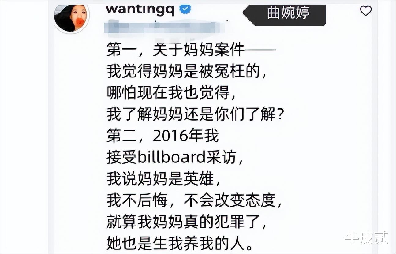 可曲婉婷不但没道歉,还老替她妈喊冤。