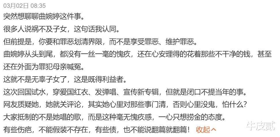 当然也有人替她说话,说她妈那事过去挺久了,再说作品本身又没错,没必要赶尽杀绝。