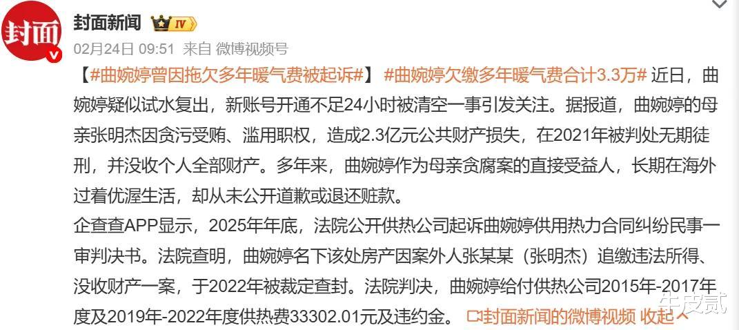 就像曲婉婷能借着明星身份站到台前给她妈喊冤,那那些被贪了安置费的普通人的苦,谁来体谅、谁来补偿?