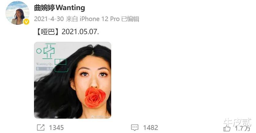 最近,皮妹刷到条消息:曲婉婷,居然复出了。