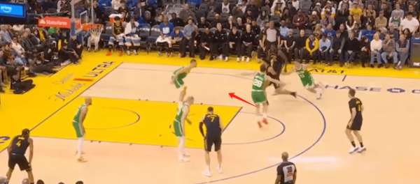 他有这样的速度和防守嗅觉 其实这时候放掉自己的防守人很危险 但是他确实也做出了这样的选择