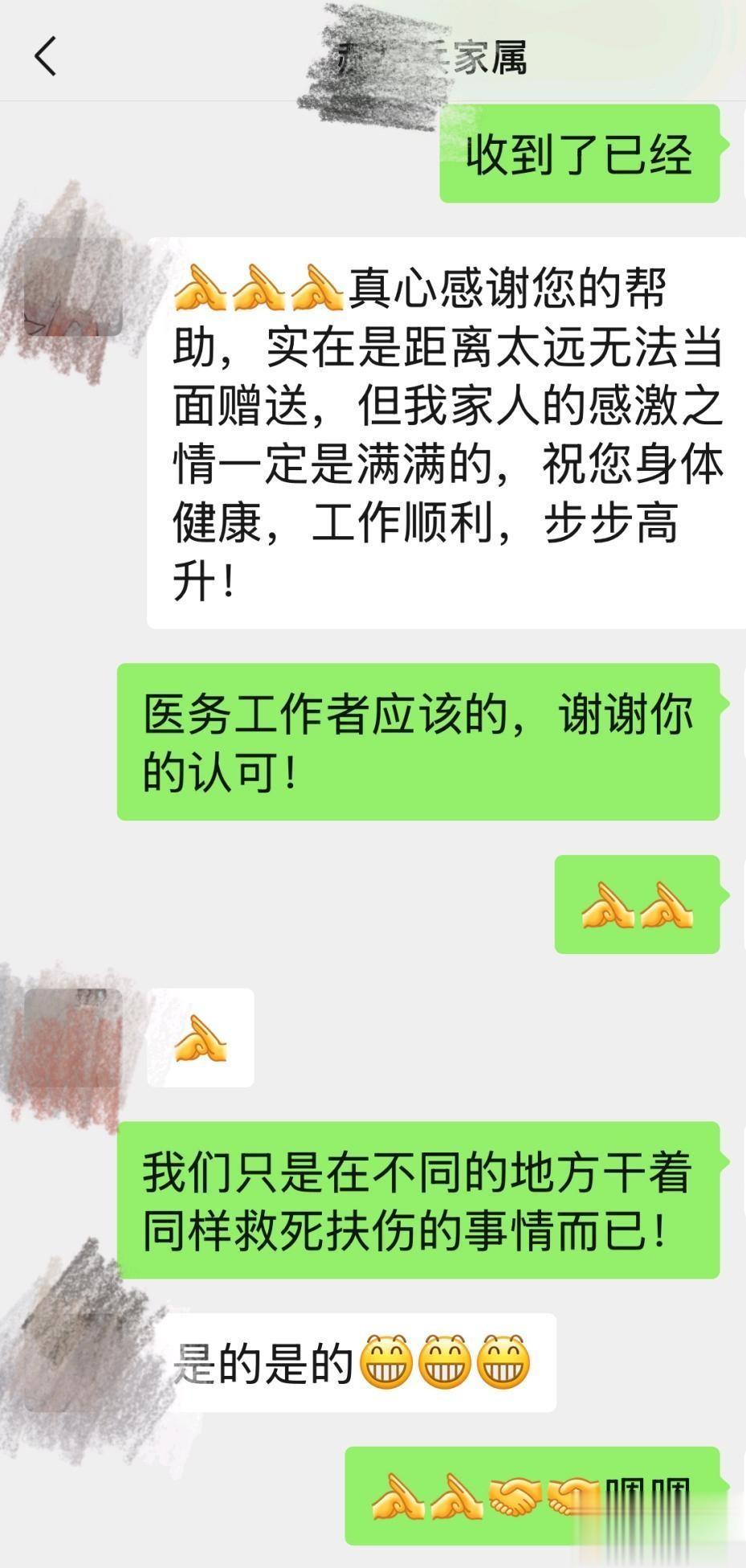 小郝通过微信向心血管科医护人员表达感谢