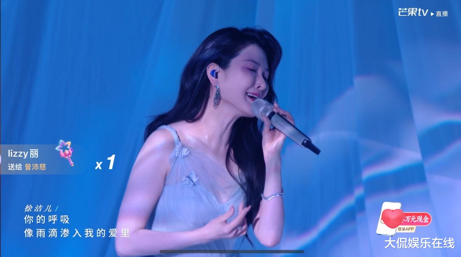 徐洁儿的强大,从不是孤芳自赏的炫技,而是“会唱更会配合”的大局观,是温柔托举整个团队的成熟气度,这也是《雨爱》舞台能成为经典的关键所在。作为团队的声乐支柱,她没有一味追求个人高光,而是将自己的声线完美融入到整个团队中,用细腻的和声为整首歌曲增色,用“不抢戏却加分”的表现,诠释了唱商与情商的双在线。《雨爱》的和声设计极具艺术性,徐洁儿的和声如同无形的丝线,让每处和声都恰到好处,不盖过主音,又能在关键段落撑起歌曲层次,这种不争不抢、默默托举的姿态,正是成熟姐姐最迷人的地方。