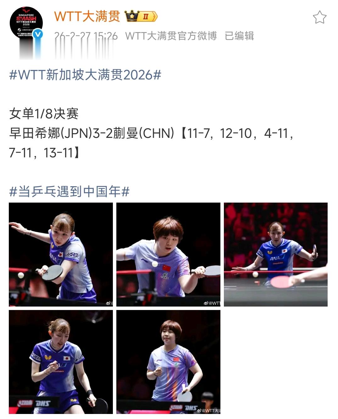 国乒队员蒯曼作为首日首场出战选手,表现出色,3-0零封罗马尼亚老将萨马拉,带来开门红。