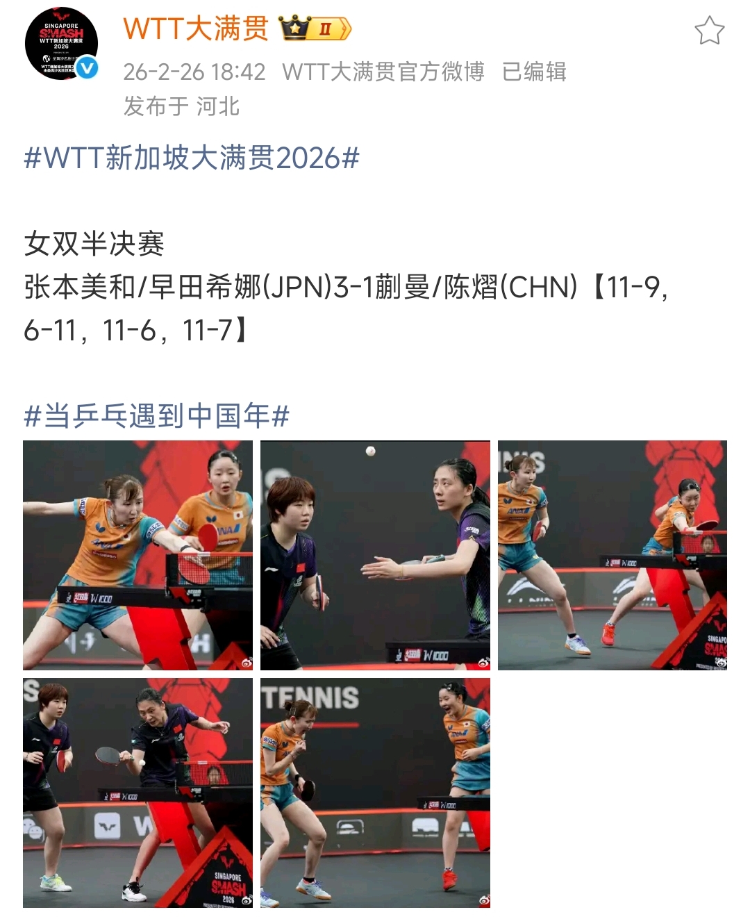 WTT重庆冠军赛今日北京时间11点正式开赛。