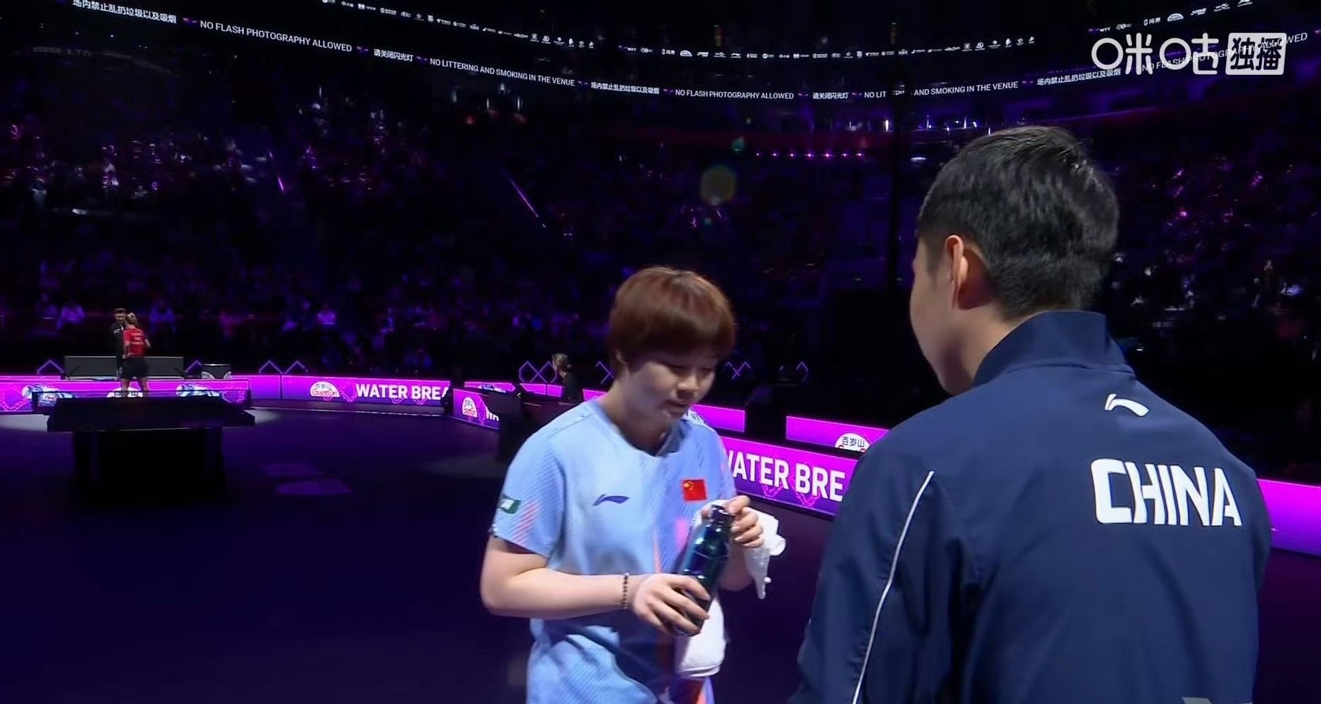 蒯曼的场外指导也由国乒女队新人教练、也是蒯曼的主管教练于子洋担任,这个时期应该也是于子洋压力最大时期,蒯曼不再使用马琳主教练和邱贻可教练担任场外,而是选择与自己主管教练于子洋两人师徒同行,重新出发也是一种决心的表现!