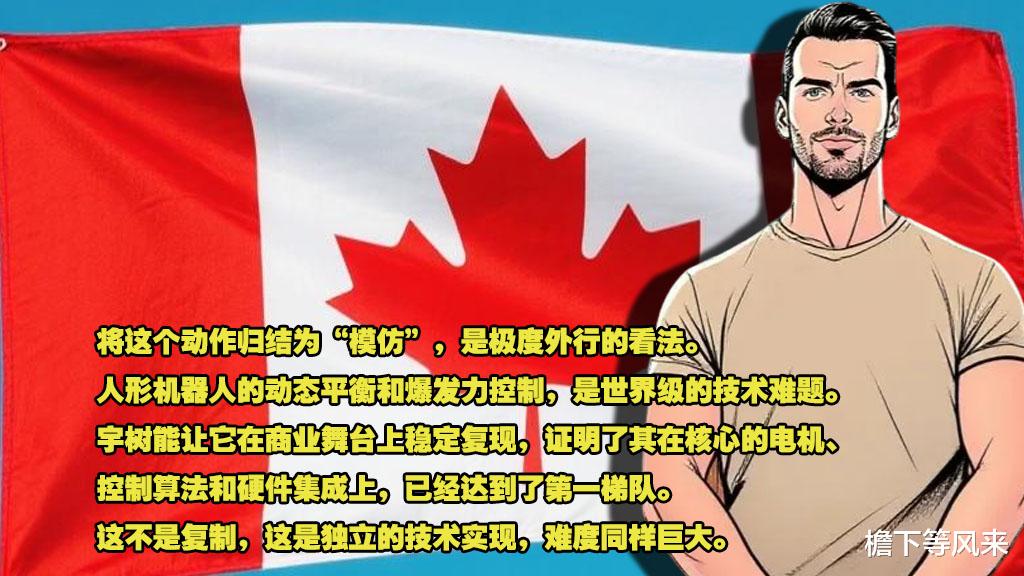 一位在多伦多大学研究机器人动力学的加拿大教授,就此事分析道:将这个动作归结为“模仿”,是极度外行的看法。人形机器人的动态平衡和爆发力控制,是世界级的技术难题。宇树能让它在商业舞台上稳定复现,证明了其在核心的电机、控制算法和硬件集成上,已经达到了第一梯队。这不是复制,这是独立的技术实现,难度同样巨大。