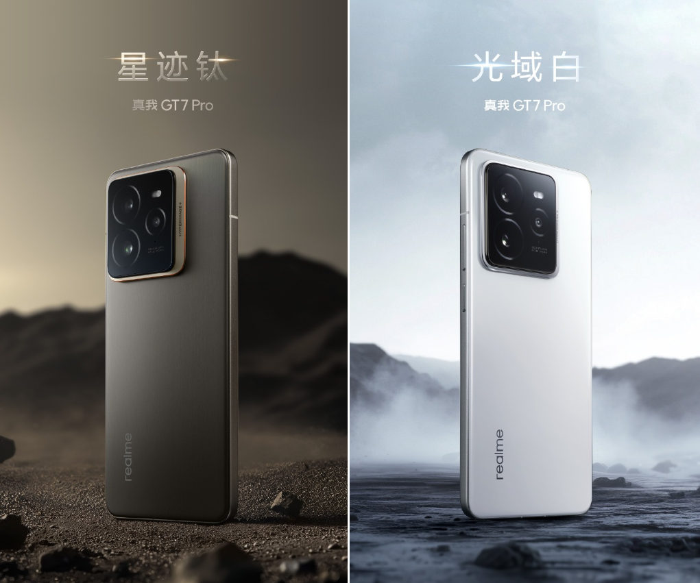除此之外真我GT7 Pro还有着星迹钛以及光域白两款配色,其中前者为金属拉丝质感,后者则是纯白色玻璃。至于机身设计方面,图片显示真我GT7 Pro的相机Deco采用左上角方形设计,由三颗镜头和闪光灯组成,影像模组加了一圈点缀的亮线,看起来很有辨识度。同时采用了低温感航空铝直角中框。相信新机在手感方面也会得到极大的保证。