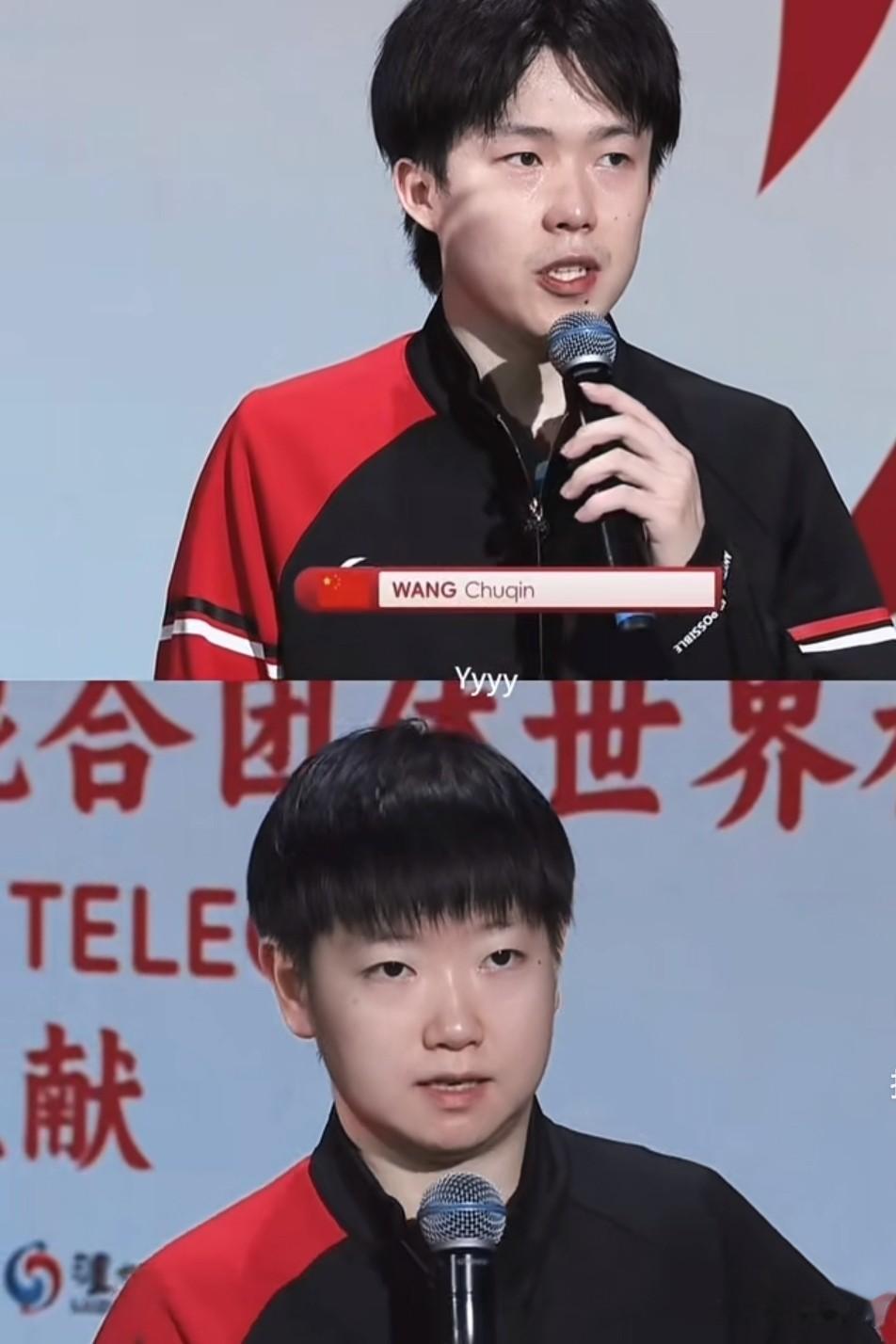 今天场内采访是邀请了莎莎和楚钦,王楚钦在接受采访时,说前面的混双和女单是保证了一个5:1的比分,自己的单打没有打好,弗朗西斯卡这次确实打的出乎他的意料,但是双打他还是很满意的,估计单打没有拿到三分,楚钦也会有一点自责吧。看到有网友说:“一个人连着打了六局拿了3分还不满意,真的自我要求太高了!”到了莎莎的采访,莎莎是肯定了团队的每一个人,大家都是全力以赴去对待每一场比赛,莎莎说和队友之间要相互信任,相互鼓励,这个话应该也是说给旁边的搭档吧。