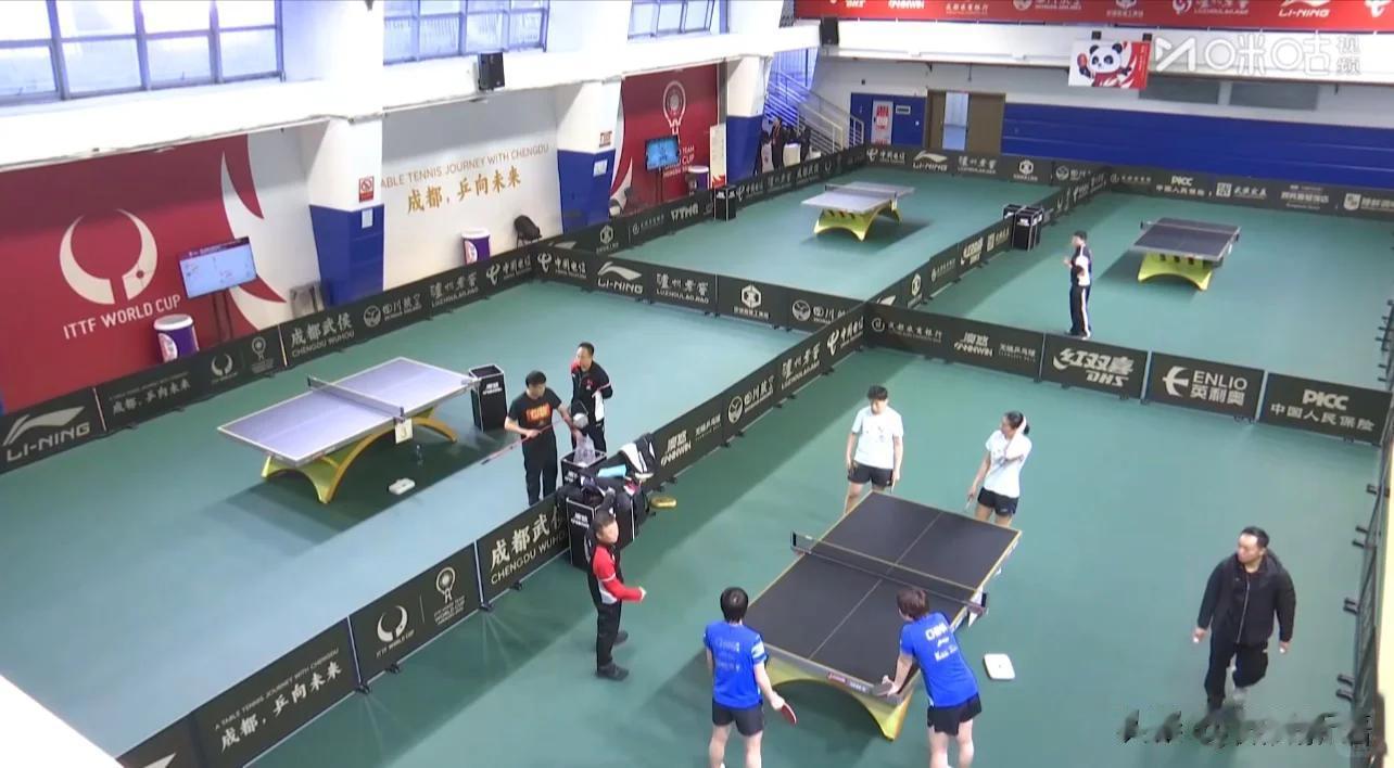 男双在比赛的时候,看到热身场那里王曼昱/蒯曼已经在练球了,也是随时准备上场,看到马琳、任浩、邱贻可都在热身场馆帮着备战女双的比赛,不过男双赢了,女双就不用打了。