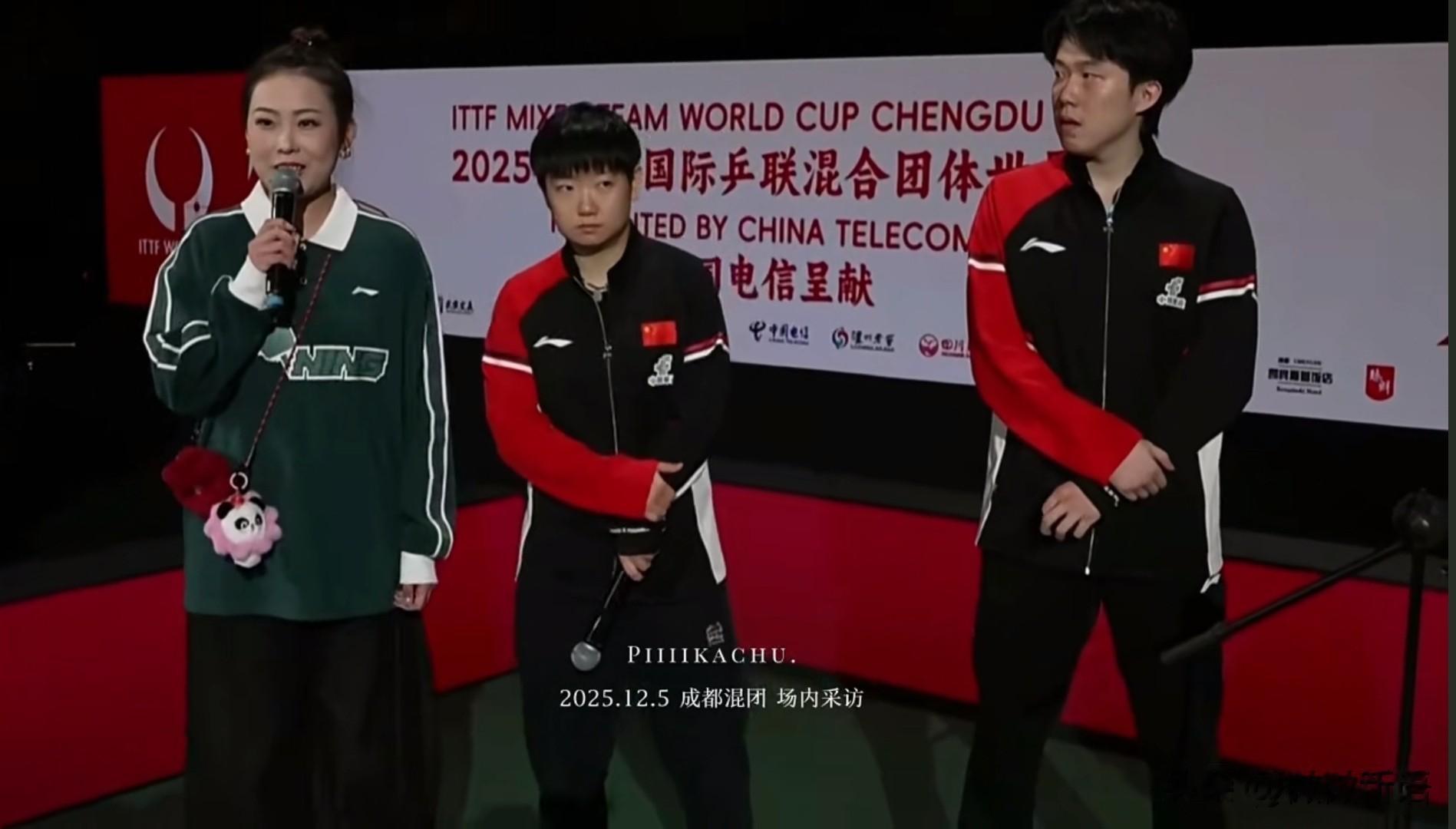 今天应该场馆那边有点冷吧,看到莎莎穿着羽绒服在采访了。莎莎说觉得混团的比赛挺有意思的,莎莎是真的很爱乒乓球,打什么她都说有意思,看到有网友说:“享受比赛你快乐就很好。”